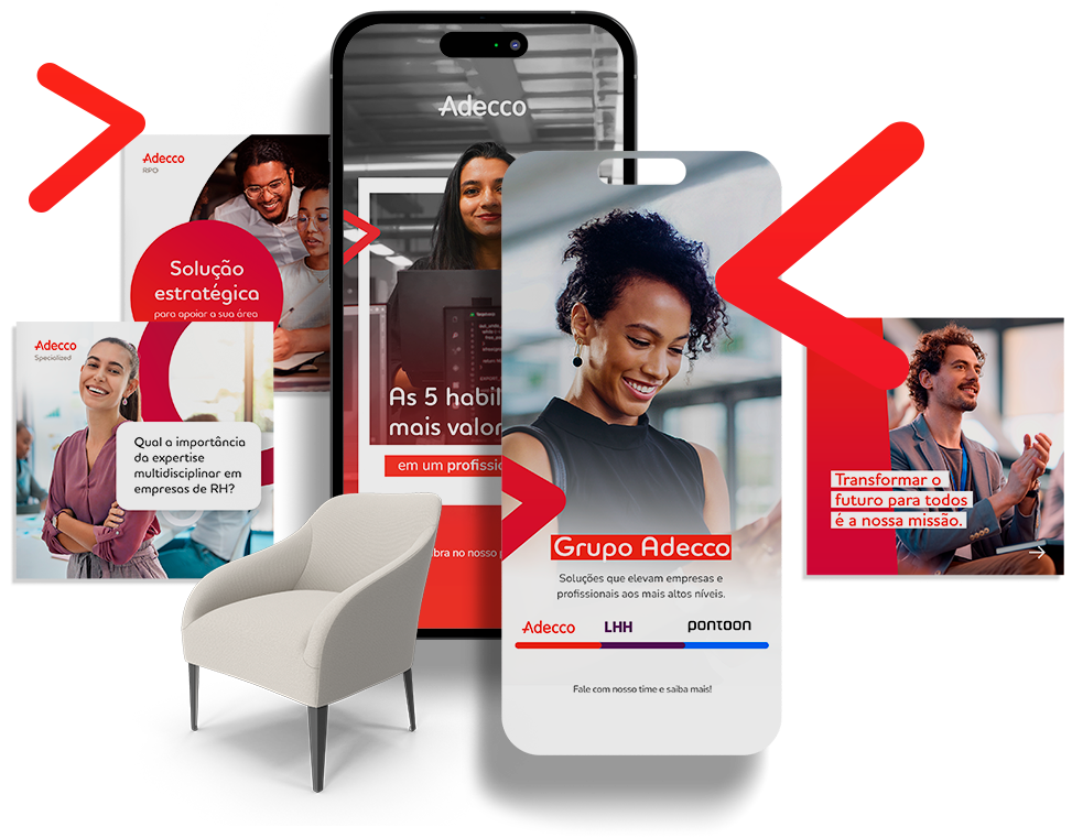 Criação de conteúdo estratégico: desenvolvimento de materiais envolvendo tendências do mercado de trabalho e insights de recrutamento, posicionando a Adecco como autoridade no segmento.